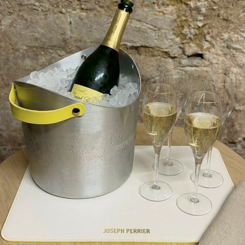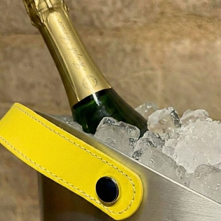 La Maison Joseph Perrier est une institution du Champagne. Ils nous ont confié une mission précise : l’habillage de leurs vasques à champagne. Nous avons fabriqué des lanières en cuir sur-mesure. Le défi était technique. Le cuir doit être robuste pour supporter le poids. Il doit aussi résister à l’humidité et au froid de la glace. Le résultat ? Une prise en main élégante et sécurisée lors du service.