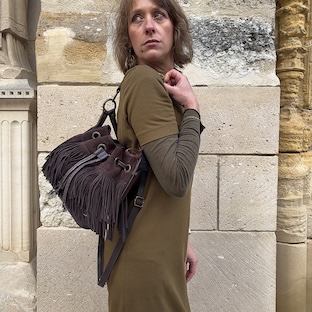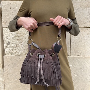 Collection Bohème – Sac Saxo à franges – Cacao